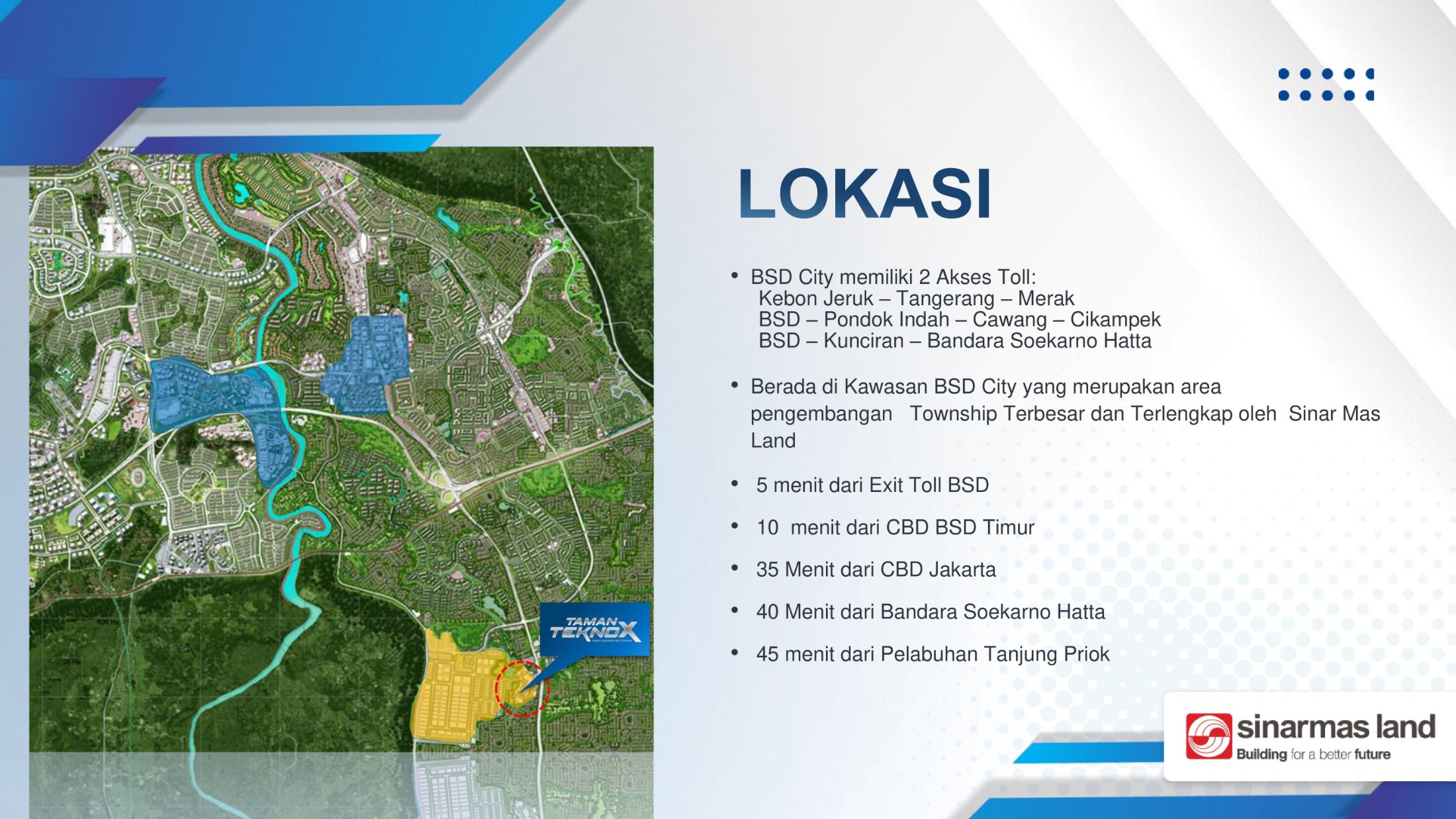 Taman Tekno Navapark berada di lokasi yang strategis dengan memiliki akses yang mudah, dekat dengan tol, serta jalan yang lebar, sehingga Taman Tekno Navapark dipercaya oleh berbagai macam perusahaan berskala multinasional